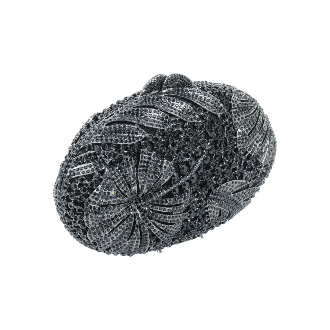 Elegância absoluta em cada detalhe. A clutch é confeccionada em estrutura de metal e inteiramente cravejada em cristais, criando um brilho sofisticado e atemporal. Seu design compacto traduz exclusividade, enquanto a alça removível em metal oferece versatilidade para transitar entre mão e ombro com a mesma imponência.
