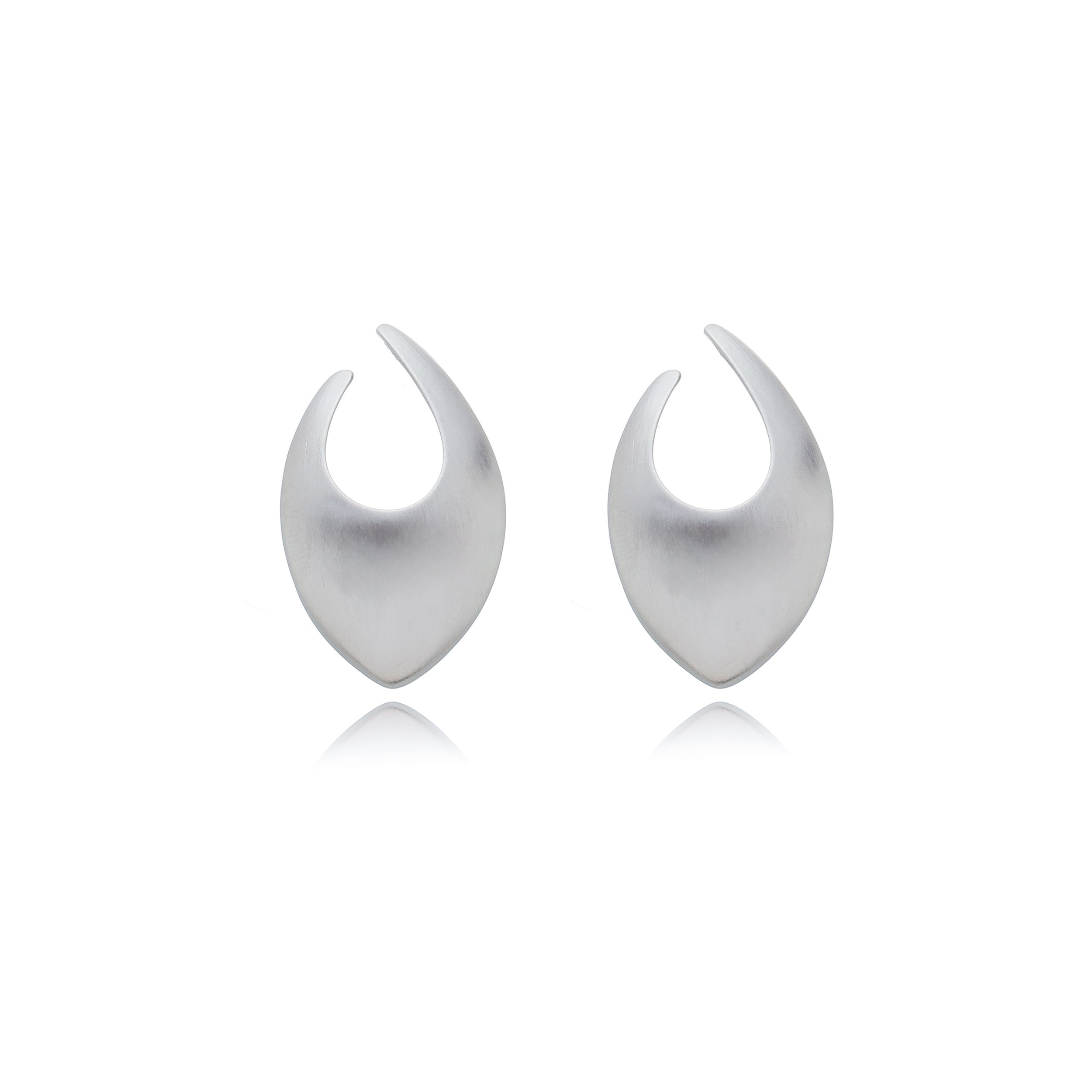 Brinco liso acetinado banho em Ródio Branco