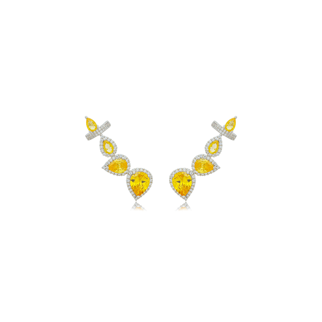 Brinco ear cuff cravejado de zircônia yellow fance rodeado de zircônia cristal