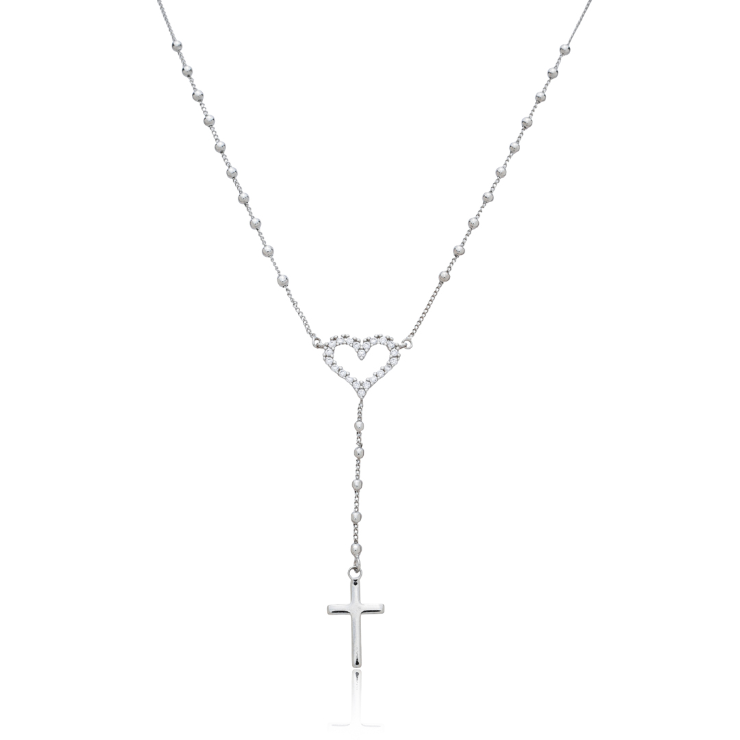 Colar de coração cravejado de zirconia cristal banho em rodio branco