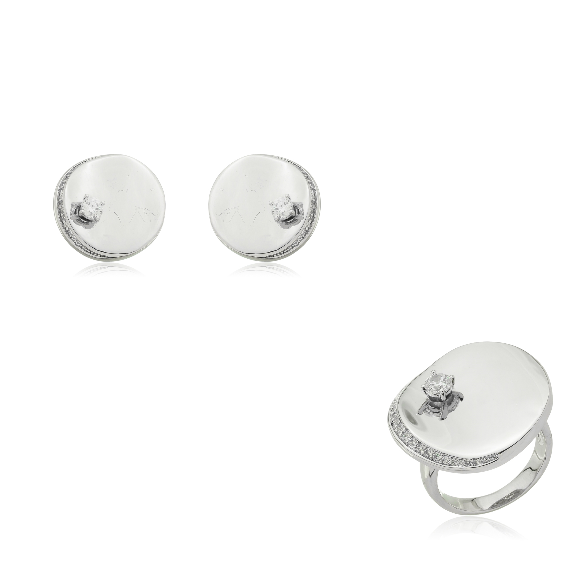 Conjunto de brinco e anel com zirconia cristal