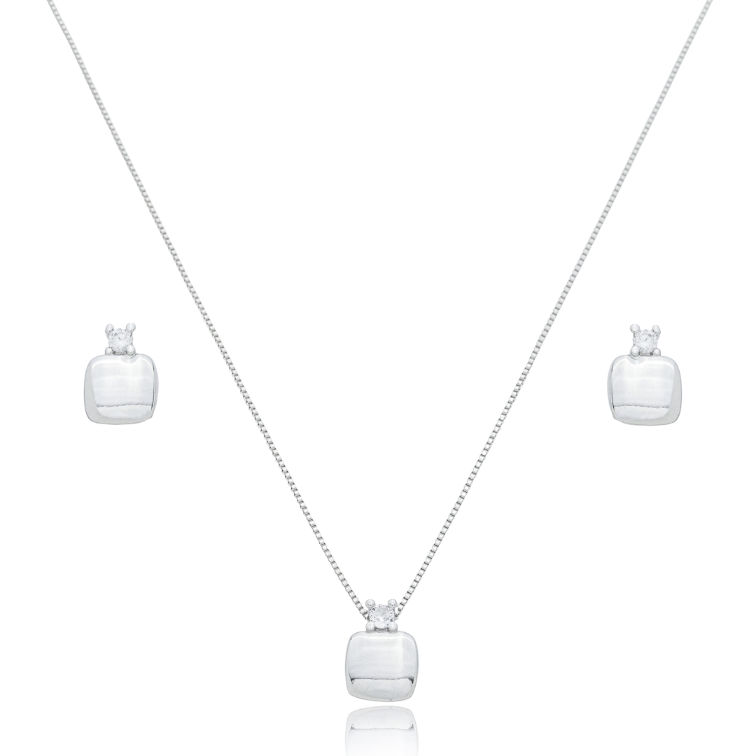 Conjunto de brinco e colar com detalhe em zirconia cristal