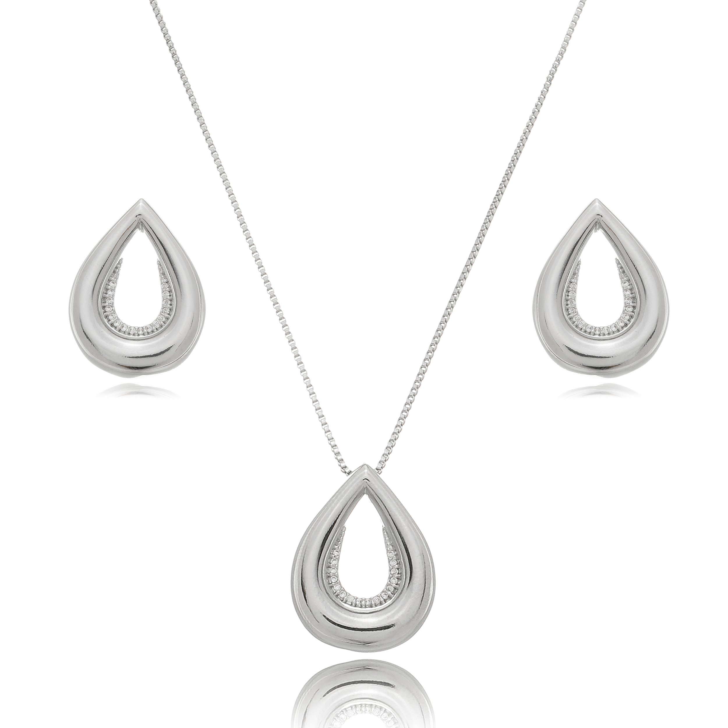 Adicione um toque de brilho e sofisticação ao seu dia com este conjunto de brinco e colar cravejado de zircônia. O brilho intenso da zircônia combina perfeitamente com o design elegante e requintado, criando um acessório de luxo único. Feito com materiais de alta qualidade, este colar é uma escolha durável e versátil. O banho em ródio branco oferece um brilho intenso e uma aparência sofisticada, combinando perfeitamente com qualquer look.