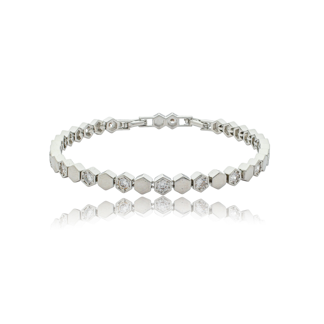Pulseira cravejada de zircônia cristal banho em ródio branco