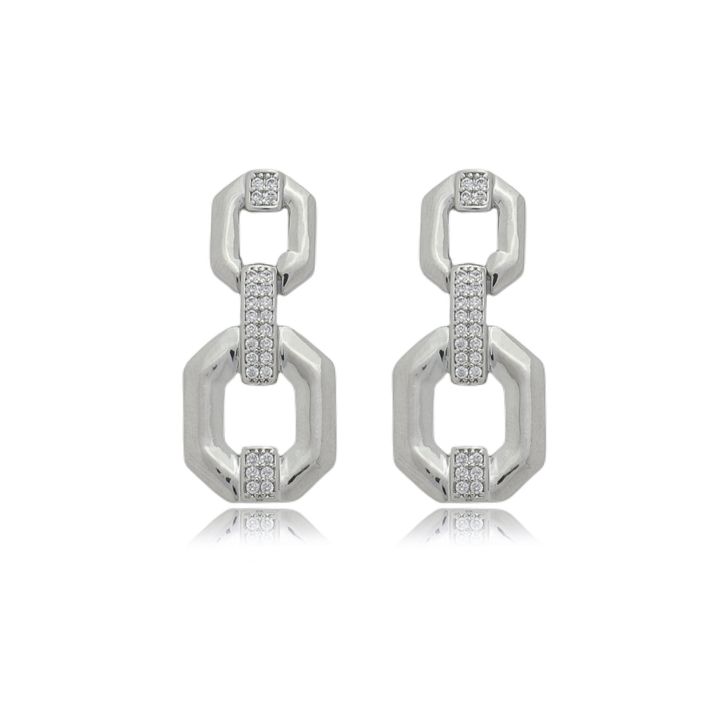 Com um design cravejado de zircônias, ele brilha intensamente e adiciona um toque de sofisticação a qualquer look. O banho de ródio branco garante durabilidade e brilho duradouro. As zircônias são pedras sintéticas de alta qualidade, criadas para imitar a aparência da diamante. Se você está procurando um acessório de semijoias, este brinco é a escolha certa.