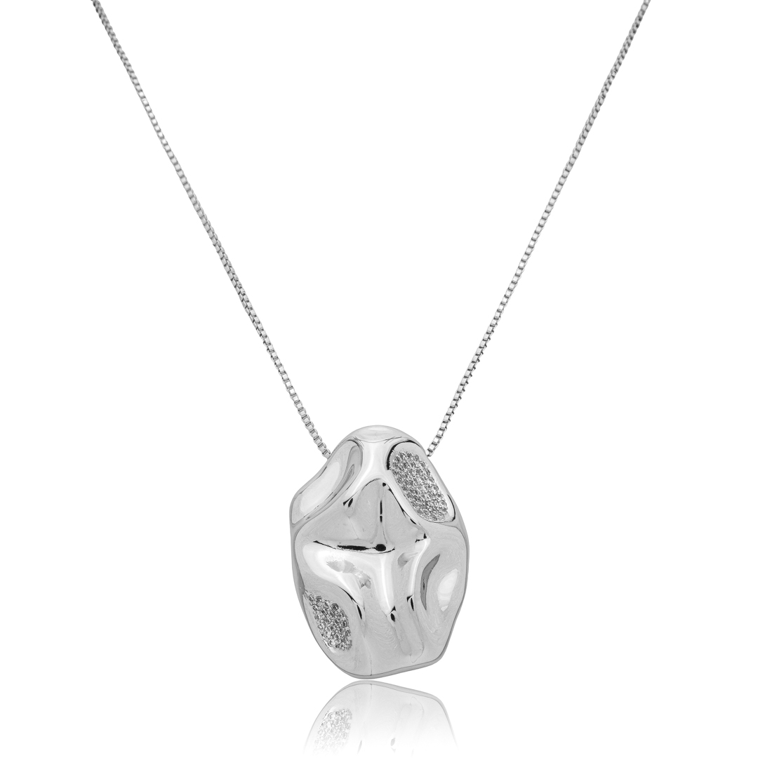 Colar com pingente organico com zirconia cristal banho em rodio branco