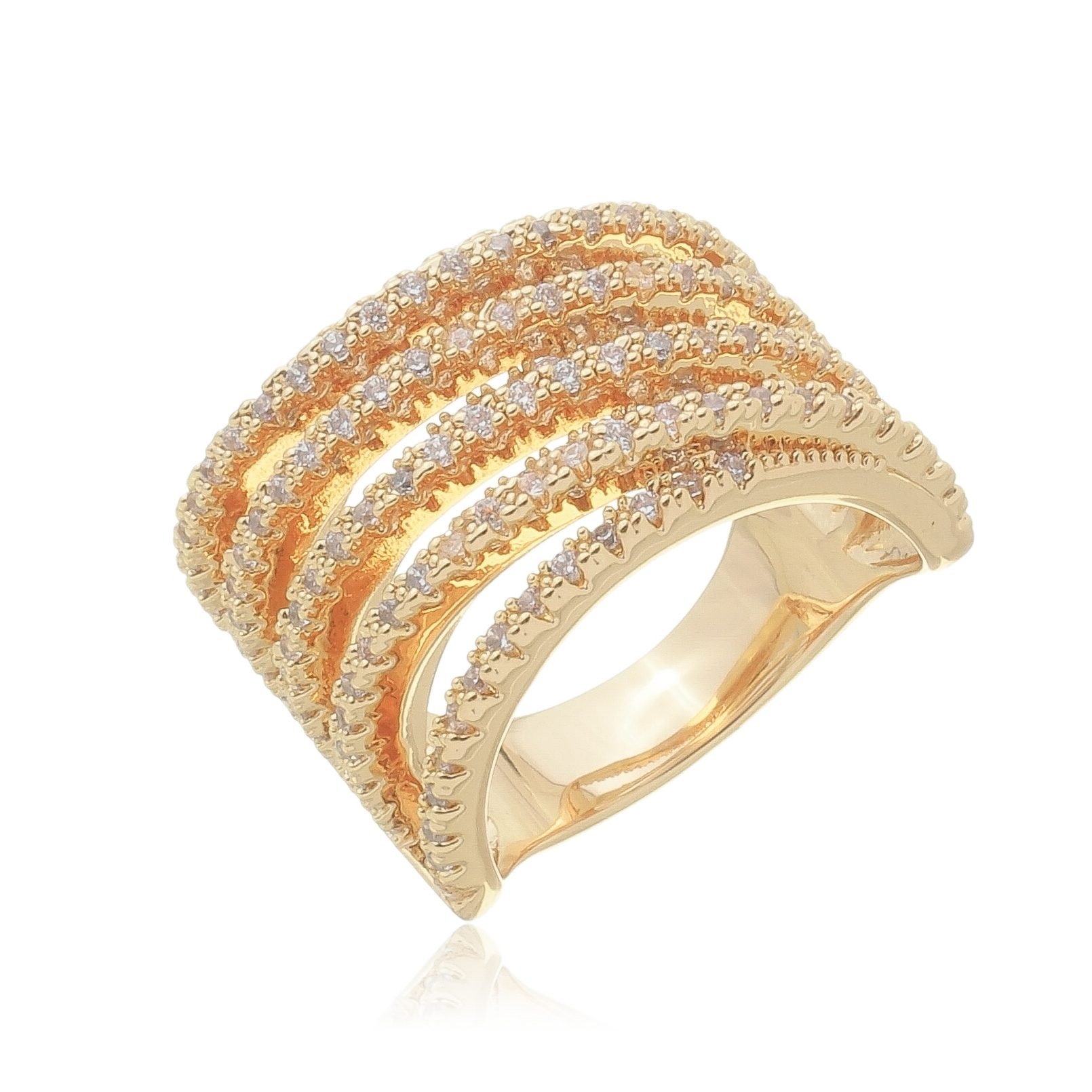 Anel cravejado de zirconia cristal banho em ouro 18k