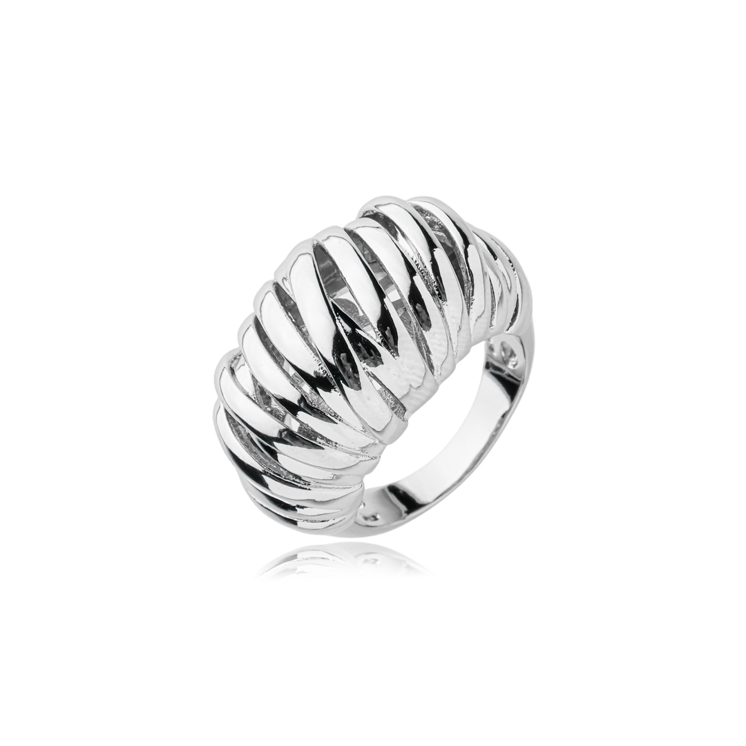 Este anel possui banho em ródio branco, garantindo um brilho intenso e sofisticado. Seu acabamento de alta qualidade destaca-se pela elegância e refino da peça.