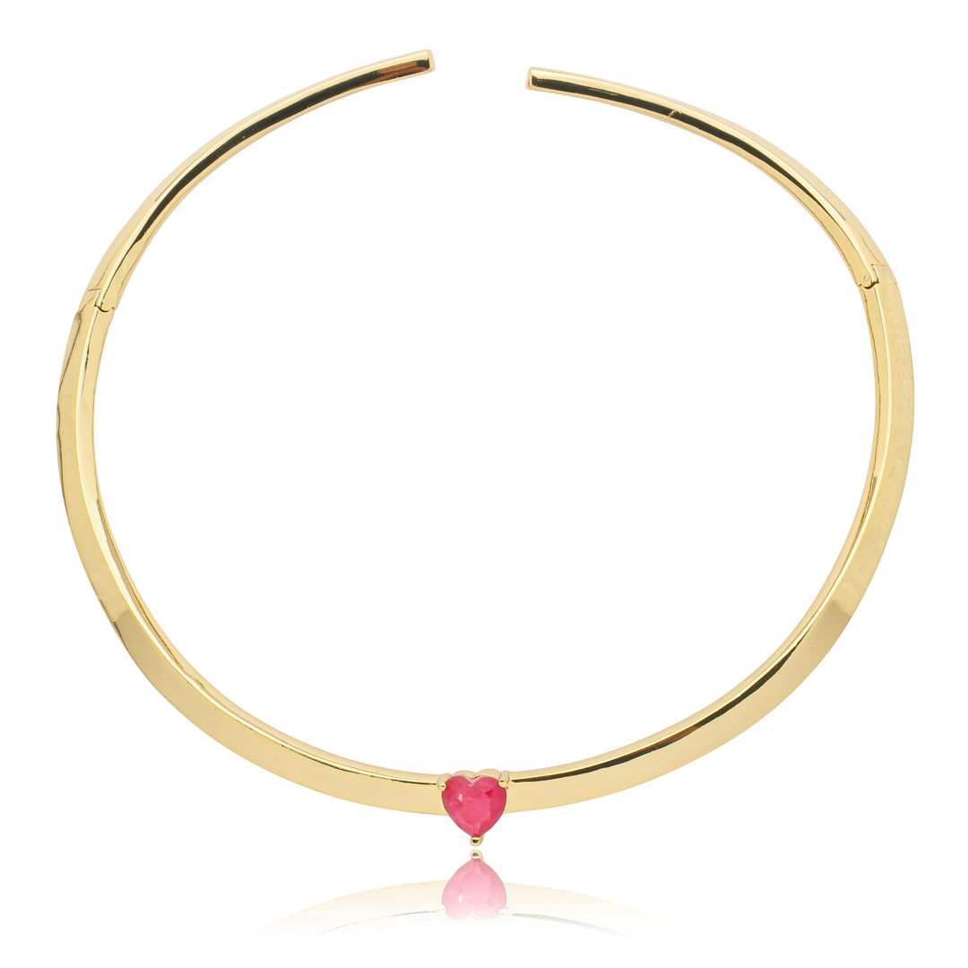 Colar de aro dourado com detalhe em pedra fusion rubi