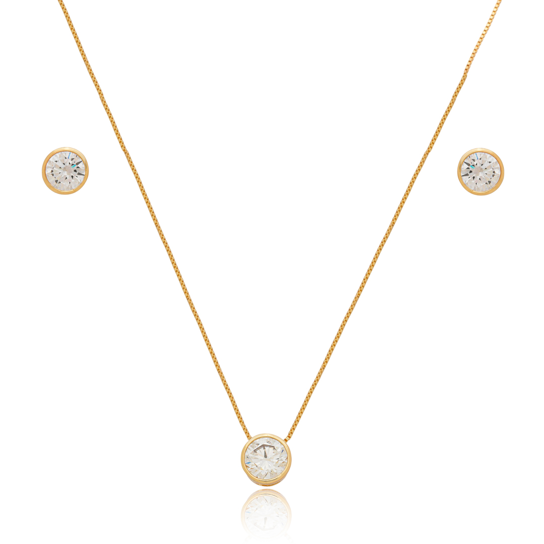 Conjunto de brinco e colar cravejado de zircônia cristal