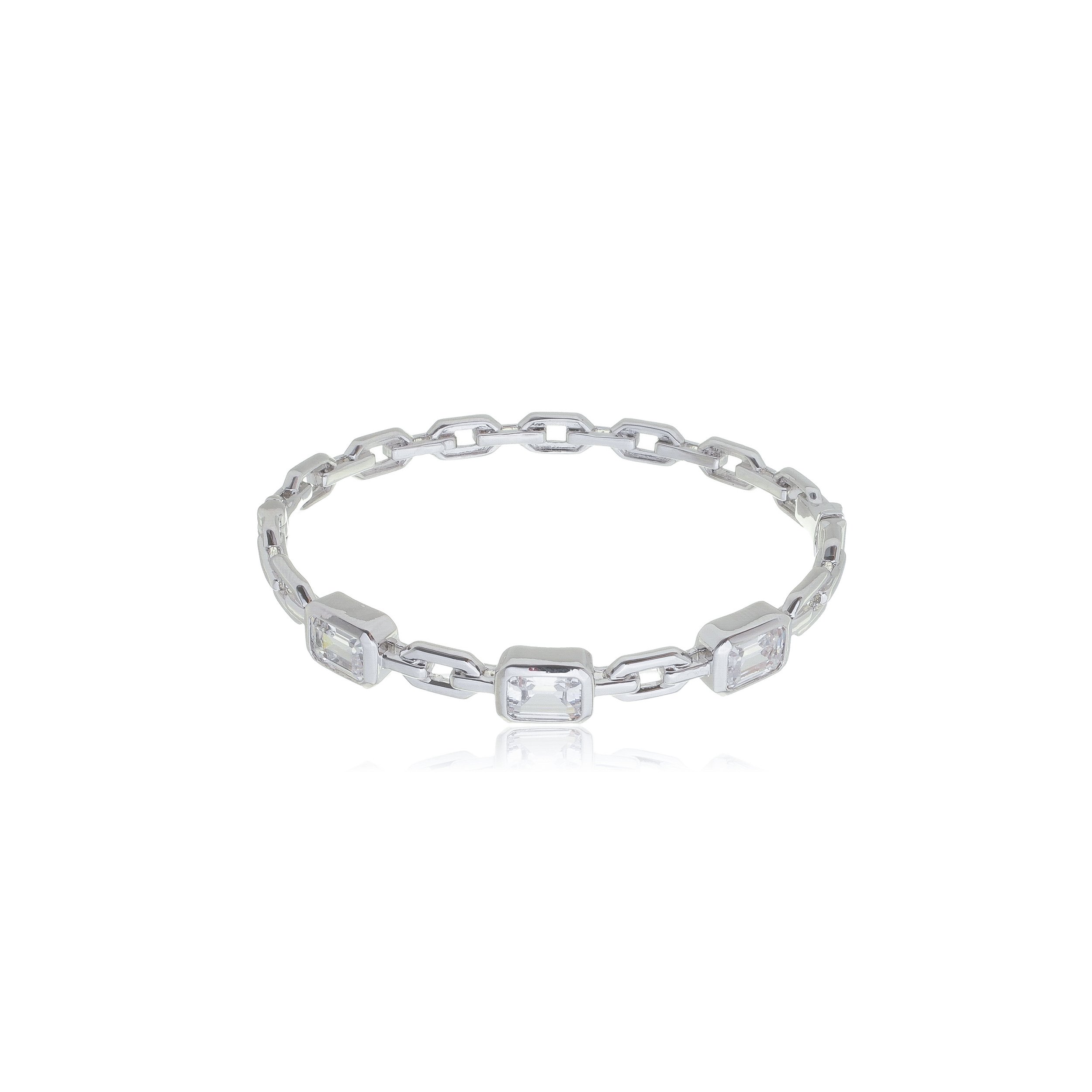 Este elegante bracelete de semijoias é cravejado com pedras de zircônia brilhantes, dando-lhe um toque sofisticado. Feito com banho de rodio branco, este bracelete é durável e resistente a danos, tornando-o uma opção perfeita para o uso diário. Adicione um toque de brilho com este bracelete cravejado de zircônia e compre agora online.