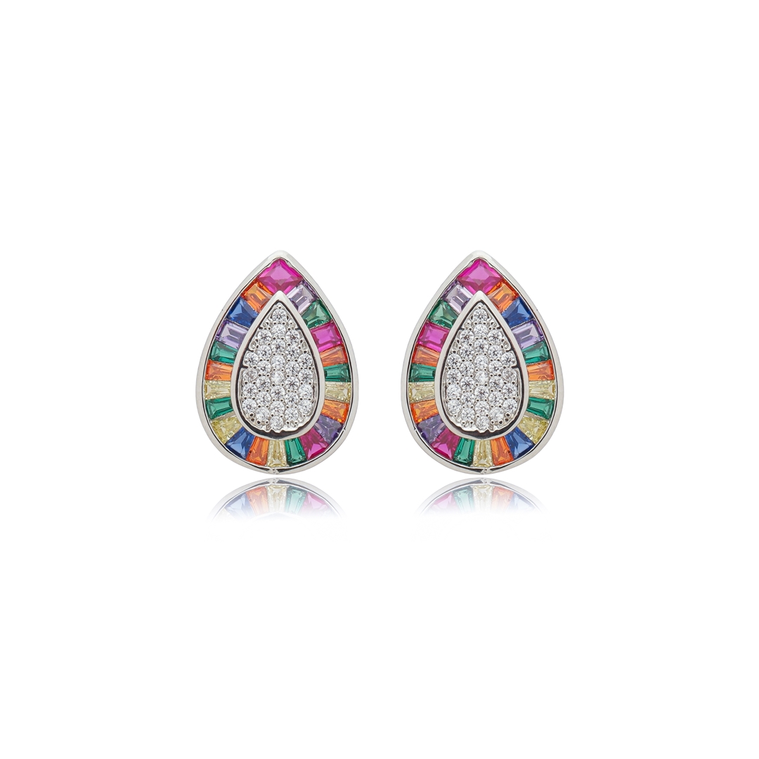 Brinco cravejado de zirconia rainbow banho em rodio branco