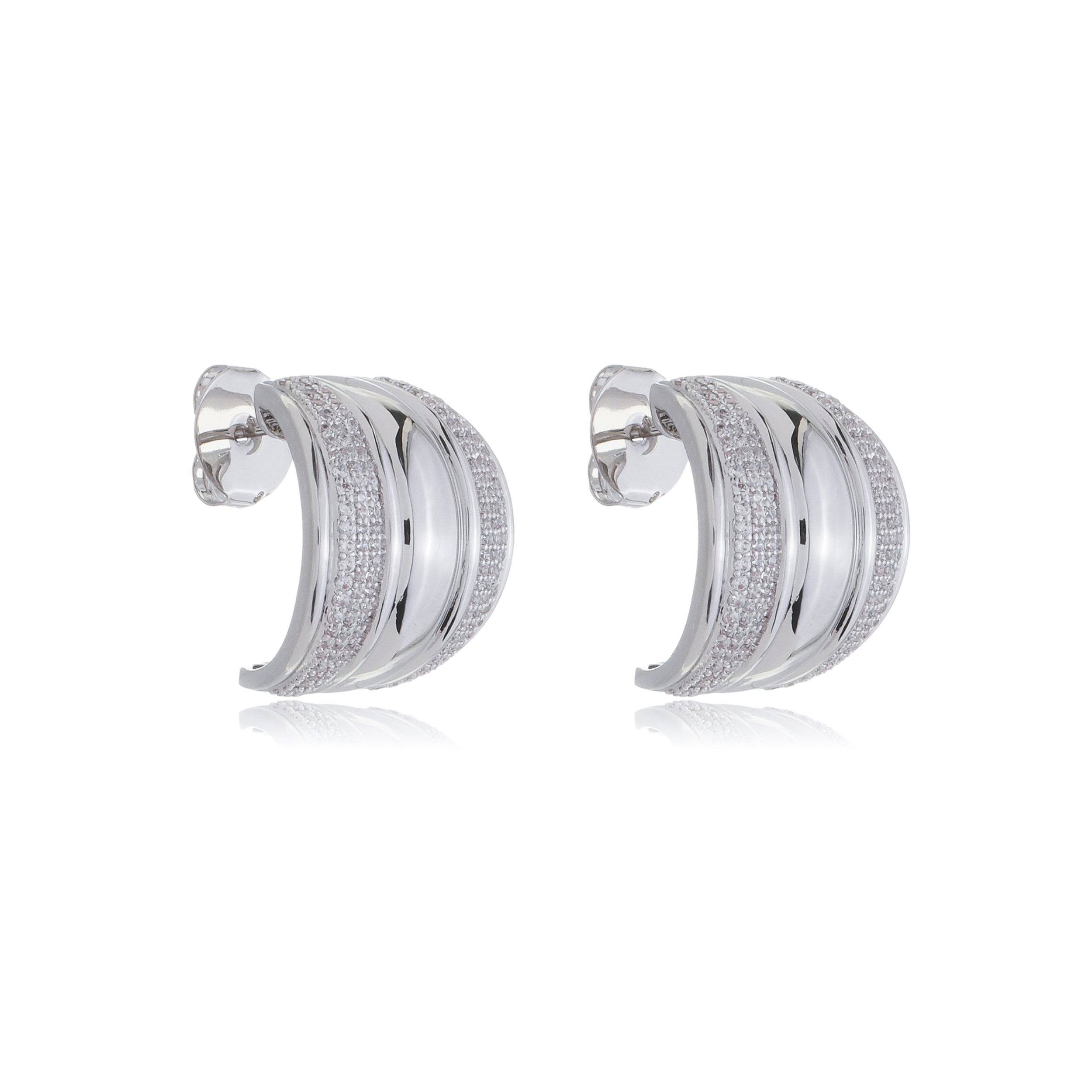 Brinco de argola com zirconia cristal banho em rodio branco