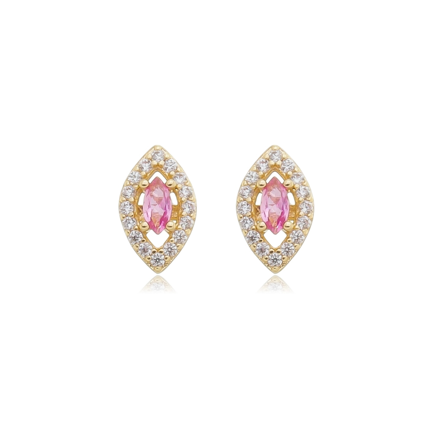 Brinco de base cravejado com zirconia pink rodeado de zirconia cristal