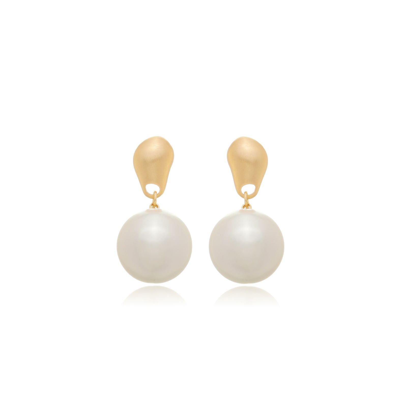 Brinco de Pérola Acetinado Banho Ouro 18K