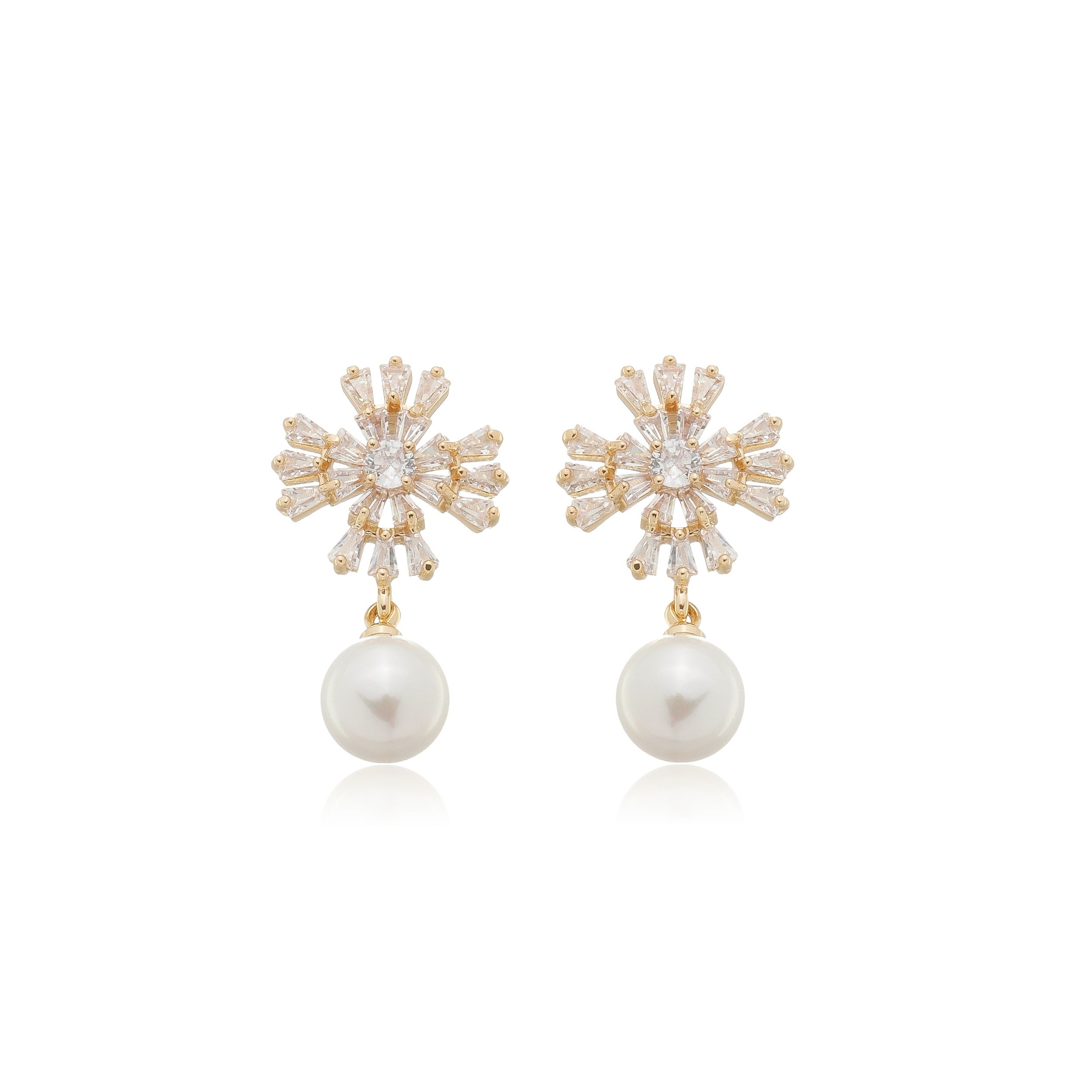 Brinco de perola com zirconia cristal banho em ouro 18k