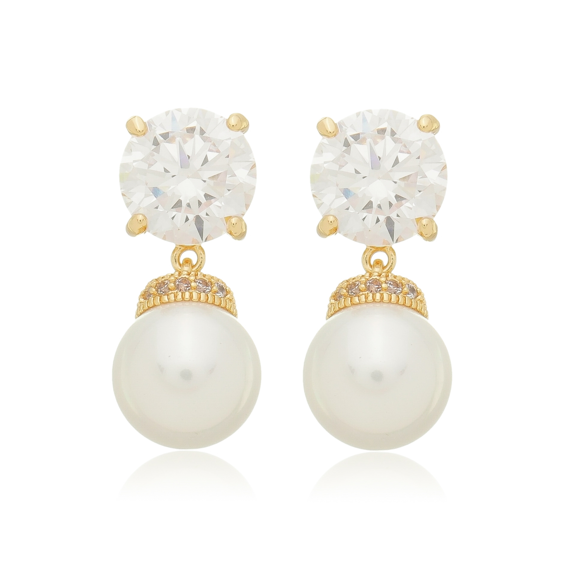 Brinco de pérola shell com detalhes cravejado de zircônia cristal