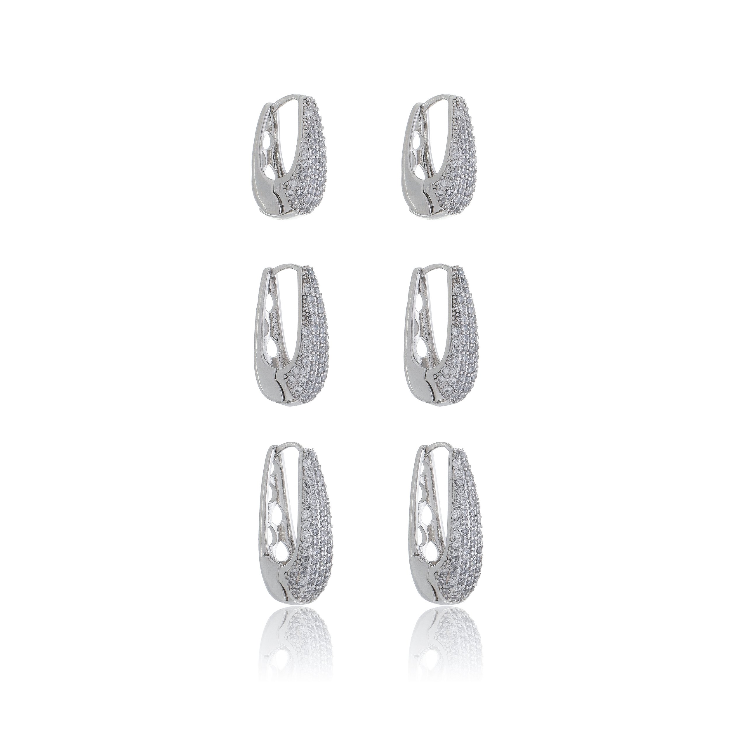 Brinco de trio de argola cravejado de zircônia cristal