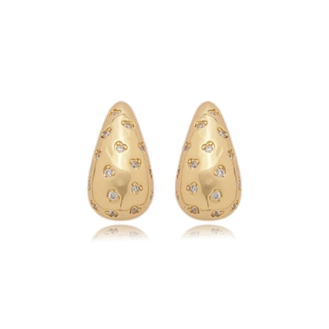Brinco dourado cravejado com zirconia cristal banho em ouro 18K