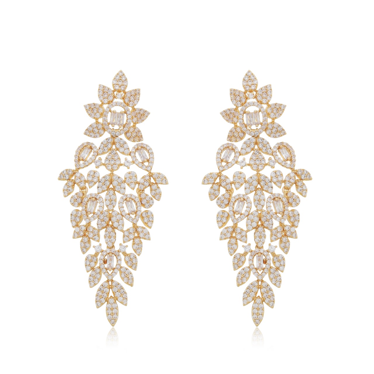 Brinco dourado cravejado com zirconias banho em ouro 18K