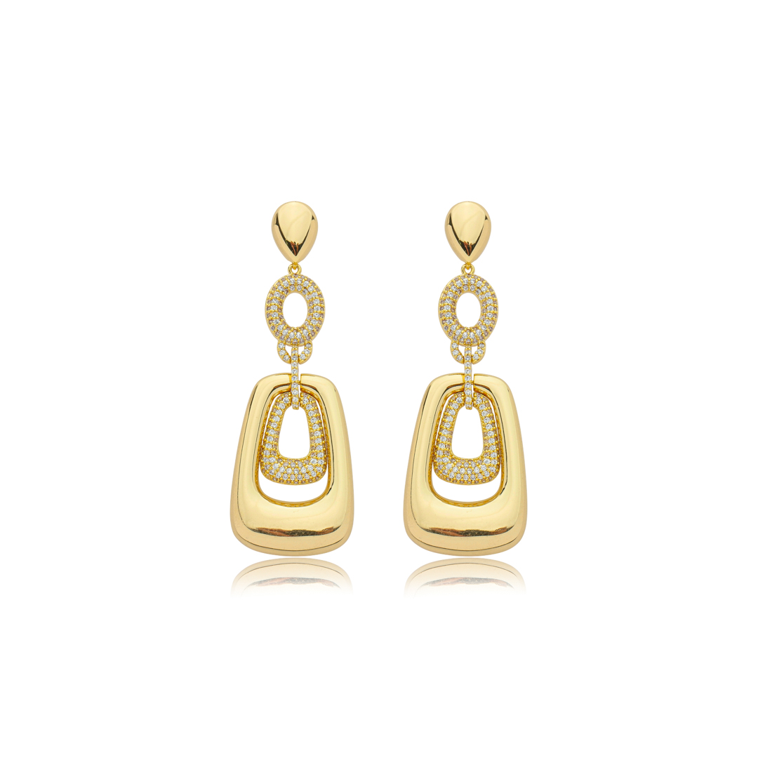Brinco cravejado de zirconia cristal banho em ouro 18k