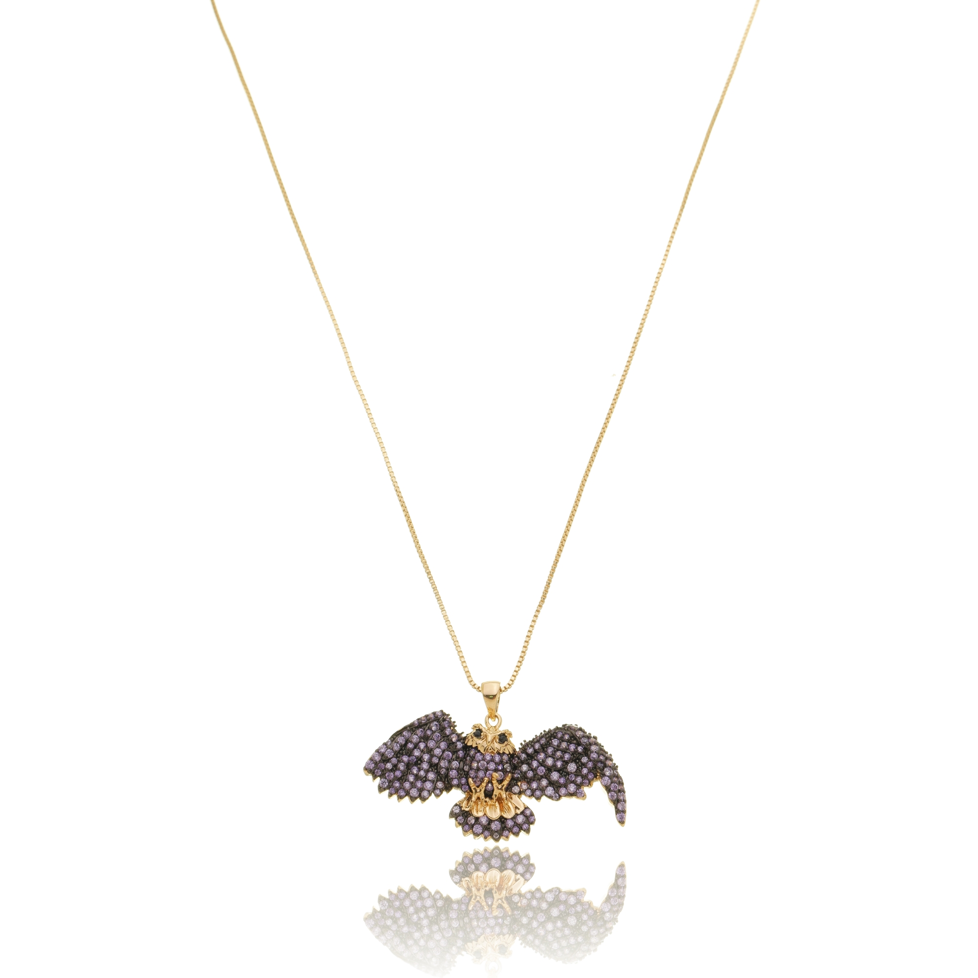 Colar com pingente cravejado de zirconia ametista banho em ouro 18k
