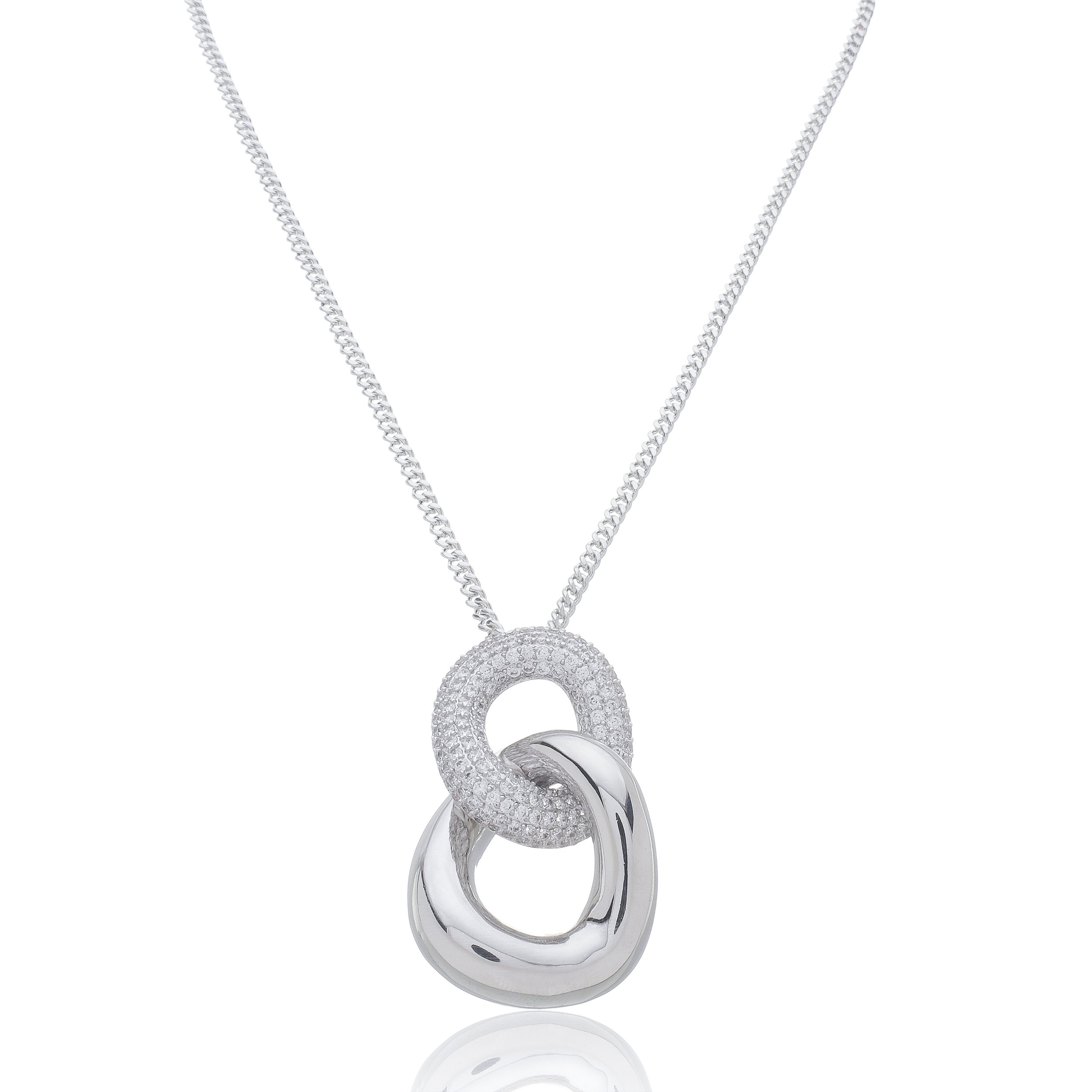 Colar de corrente com pingente cravejado de zirconia cristal banho em rodio branco