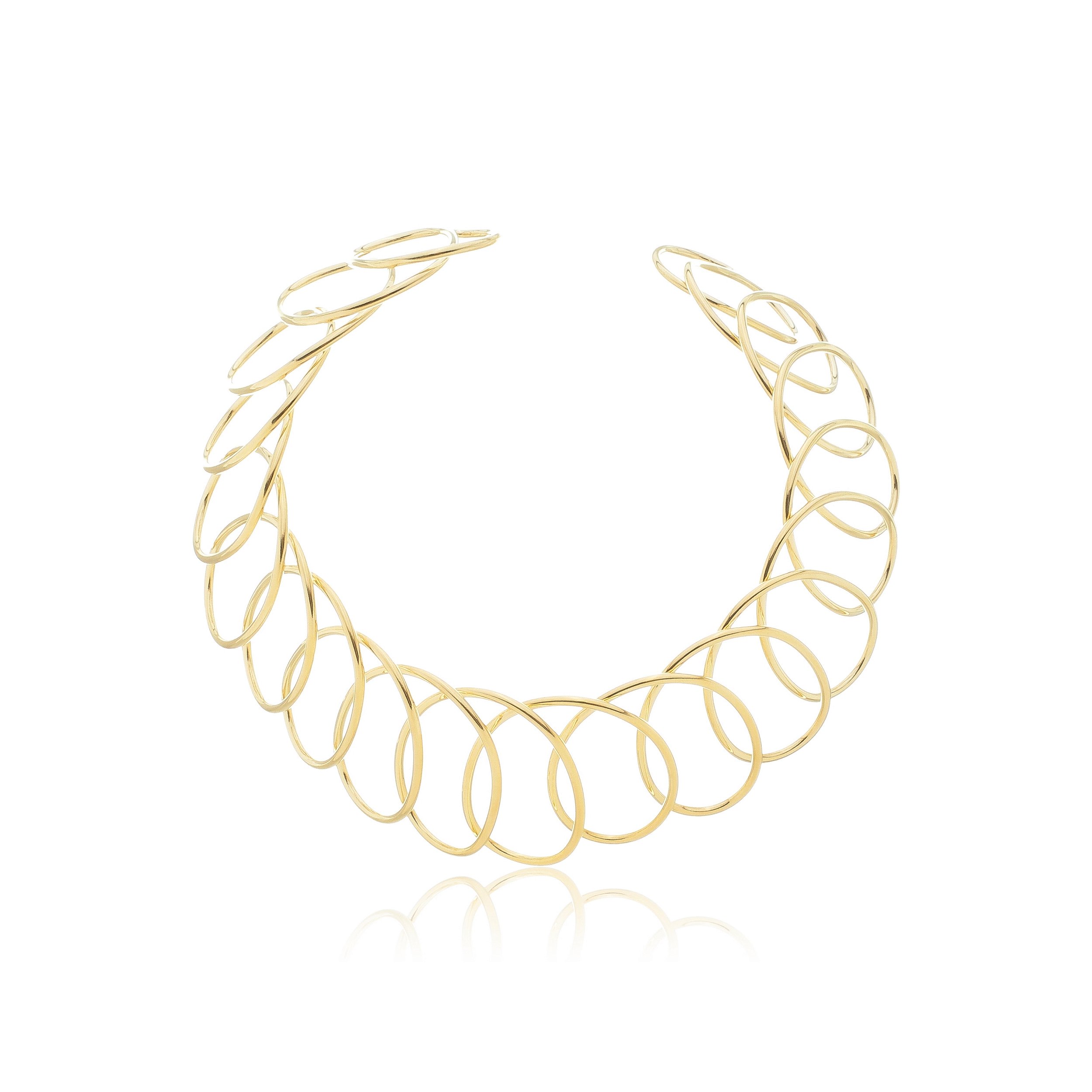 Este colar é uma joia elegante e sofisticada que apresenta um aro dourado com banho em ouro 18k. Feito com materiais de alta qualidade, este colar tem um brilho único e duradouro que adiciona um toque de luxo e glamour a qualquer visual. Com um design minimalista e moderno, este colar pode ser usado sozinho ou combinado com outros colares para criar um look ainda mais deslumbrante. Comprimento ajustável para adaptar-se a diferentes tamanhos e estilos de roupas. Ideal para quem busca um acessório elegante e versátil.