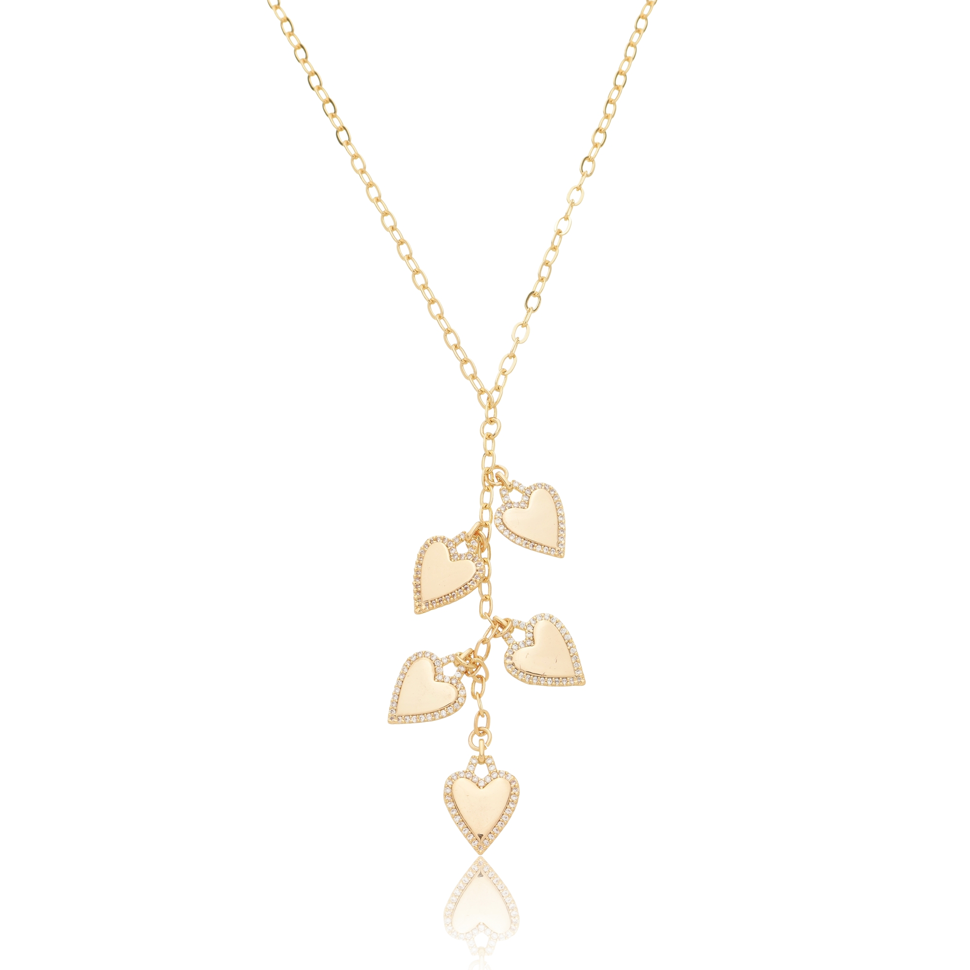 Colar de coração cravejado com zirconia cristal banho em ouro 18k