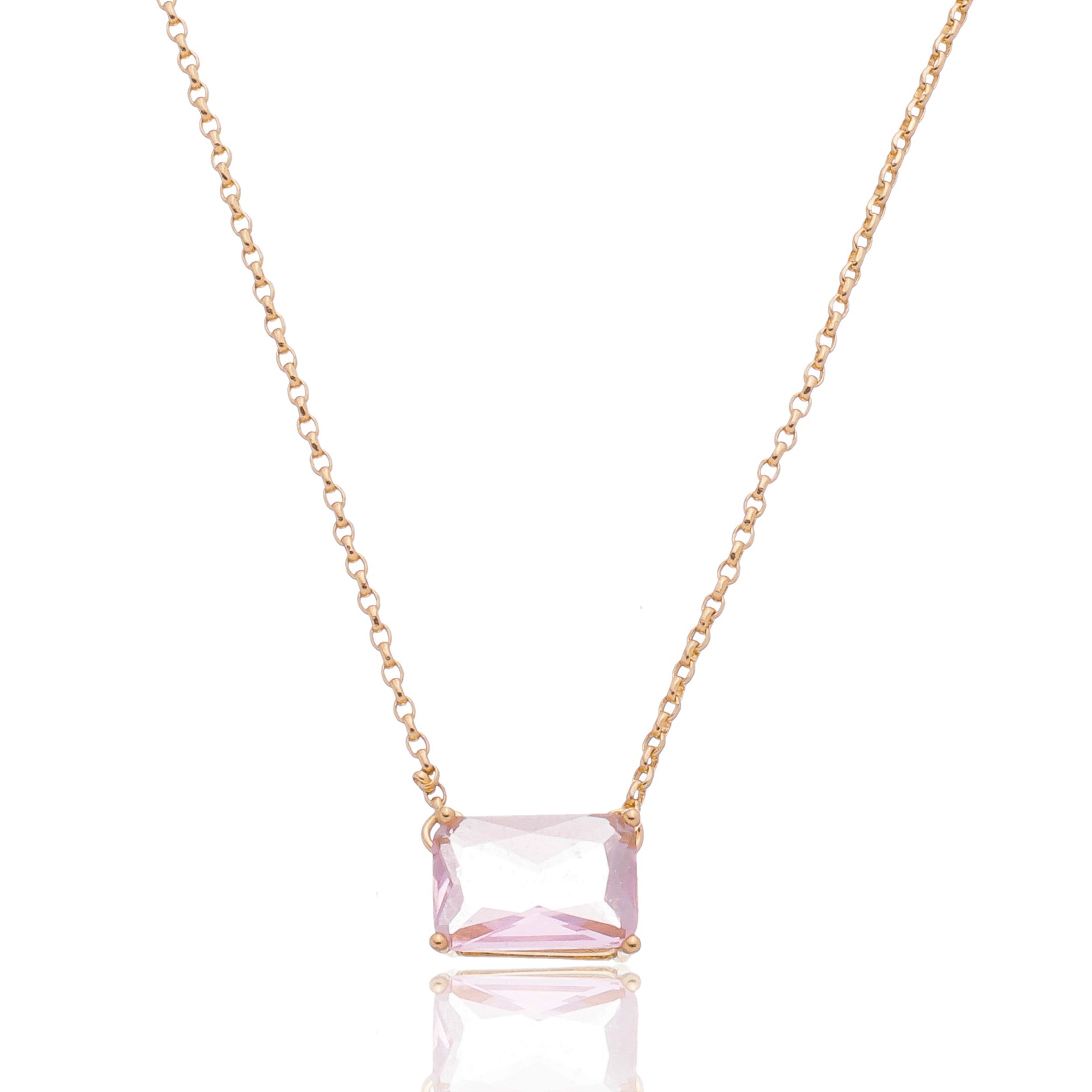 Colar de corrente dourado com pingente cravejado de zirconia cristal e rosa