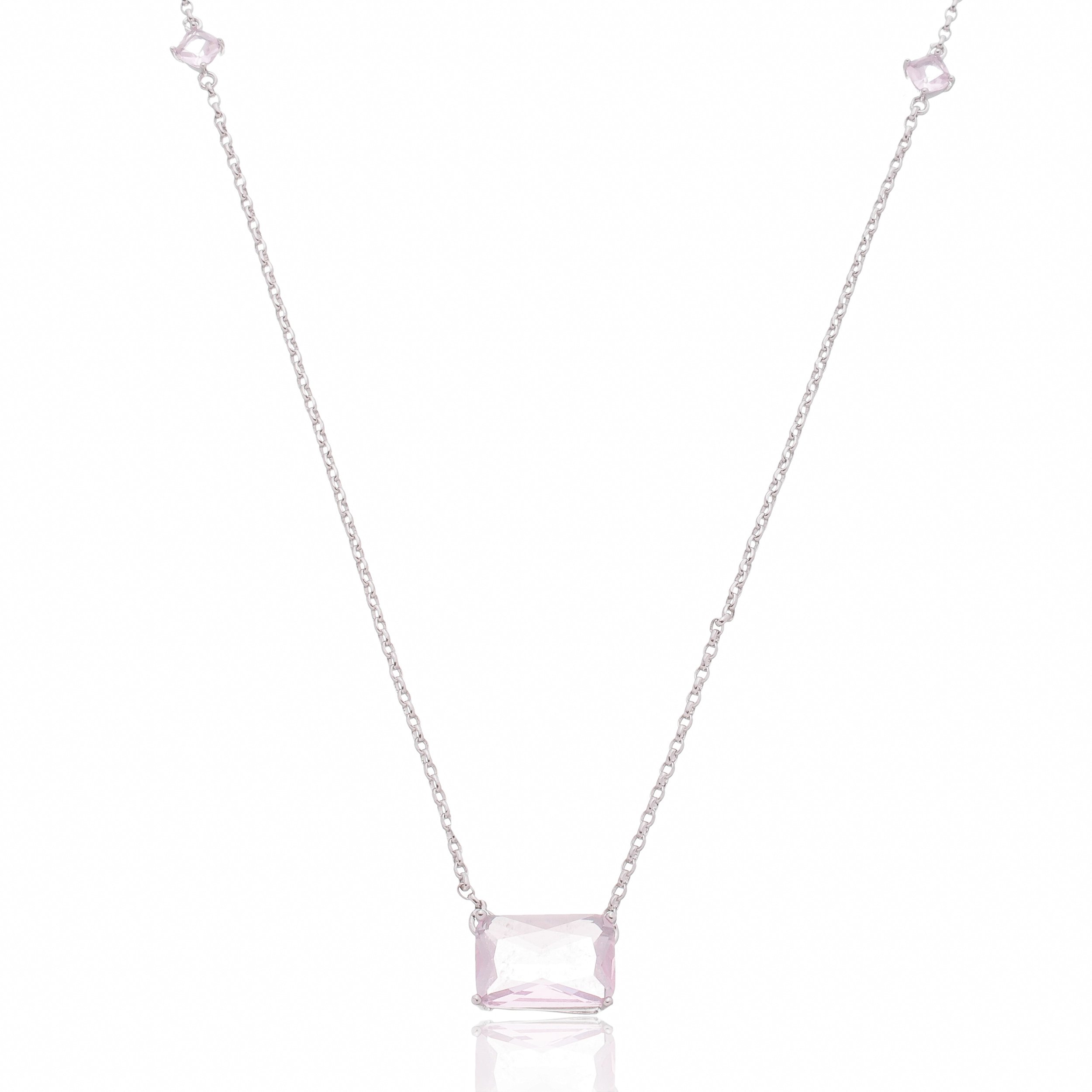 Colar de corrente com zirconia banho em ródio branco