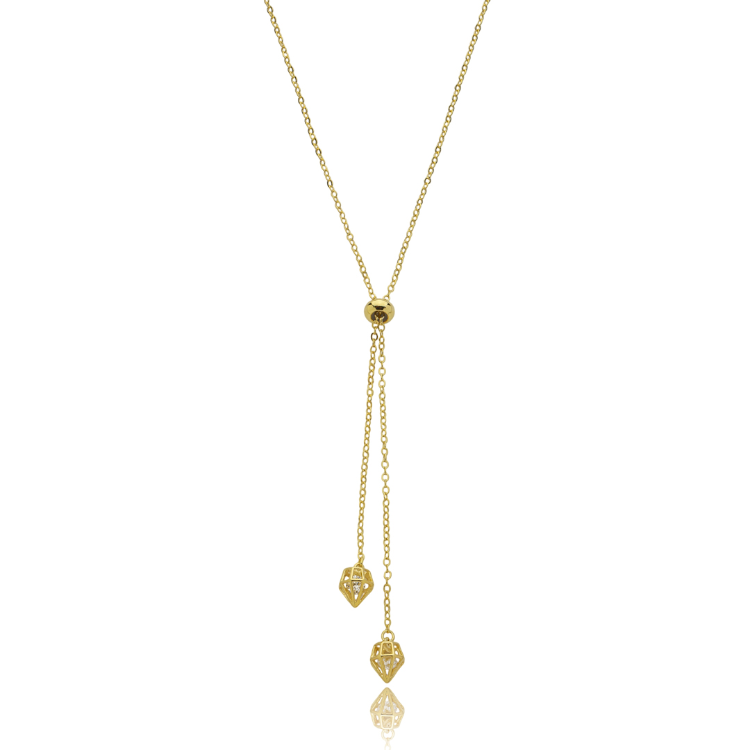 Colar dourado com pingente de zirconia cristal banho em ouro 18k