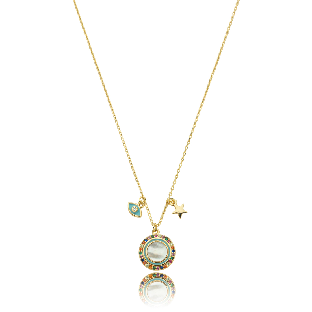 Colar em madreperola cravejado de zirconia banho em ouro 18k