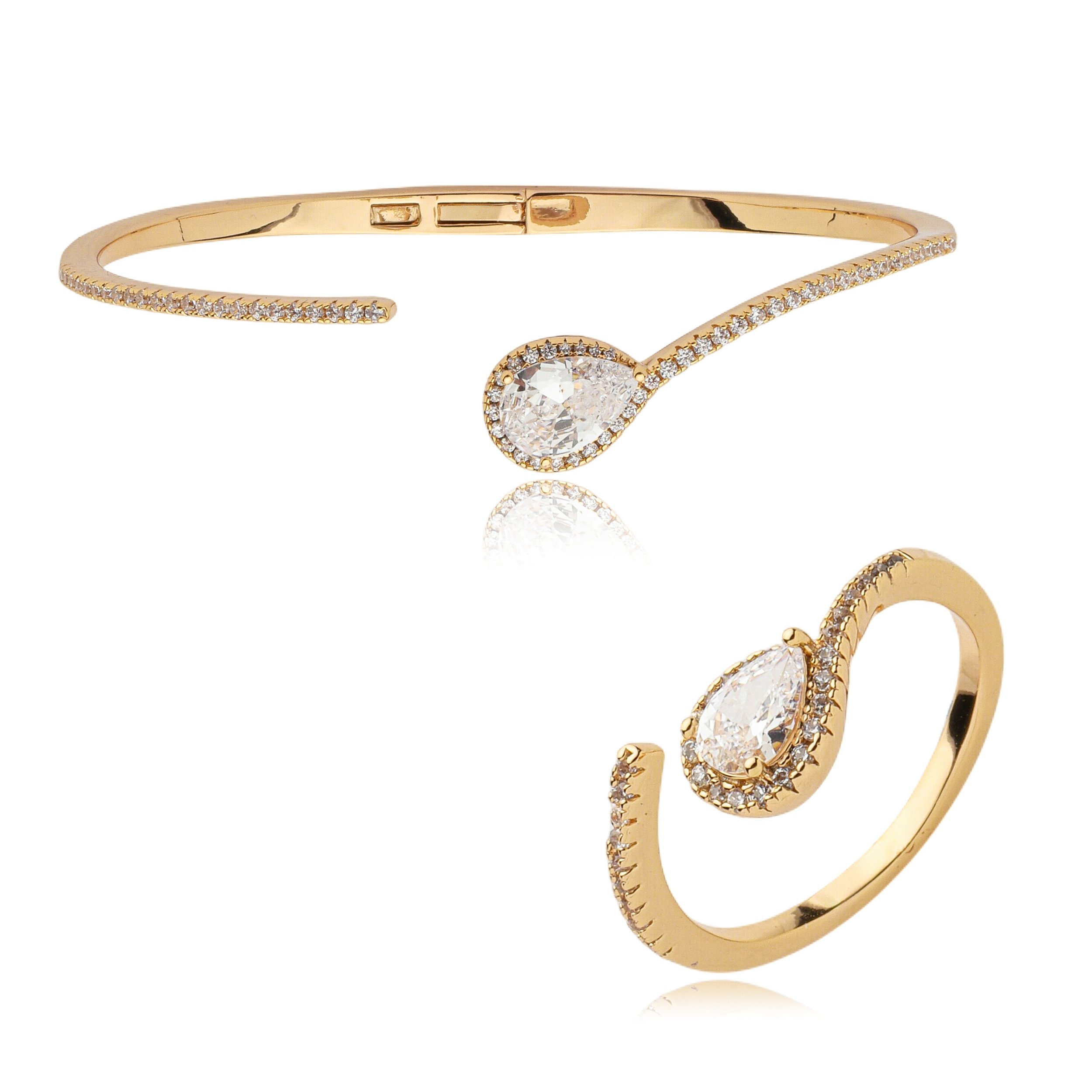 Conjunto de anel e bracelete cravejado de zircônia cristal