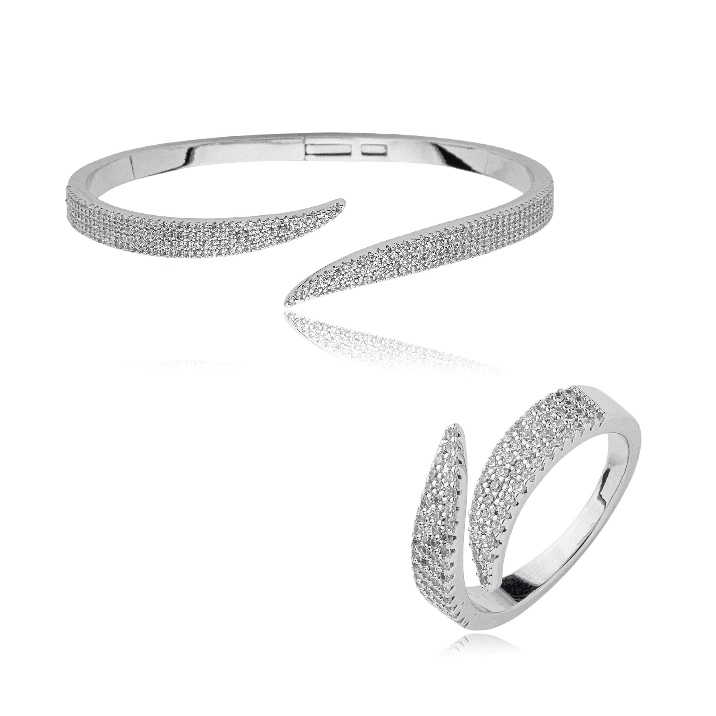 Conjunto de anel e bracelete cravejado de zircônia cristal
