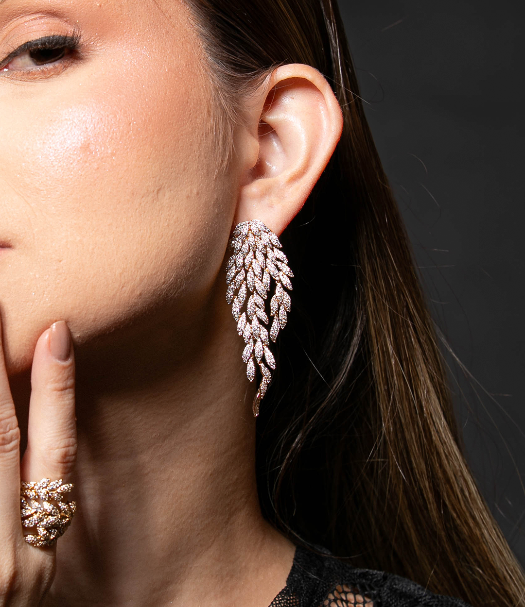 Conjunto de anel e brinco cravejado de zirconia cristal banho em ouro 18k