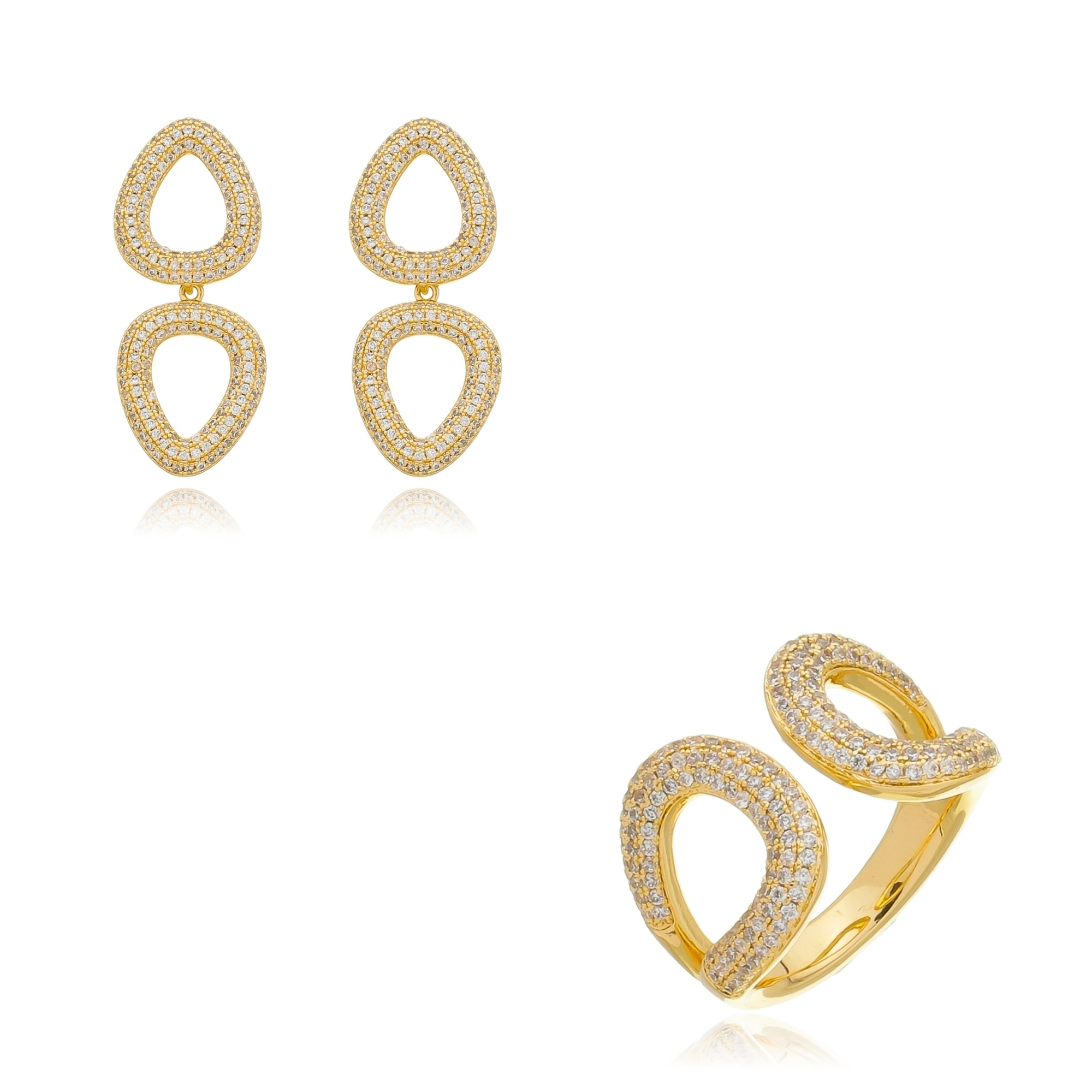 Conjunto de brinco e anel cravejado de zirconia cristal