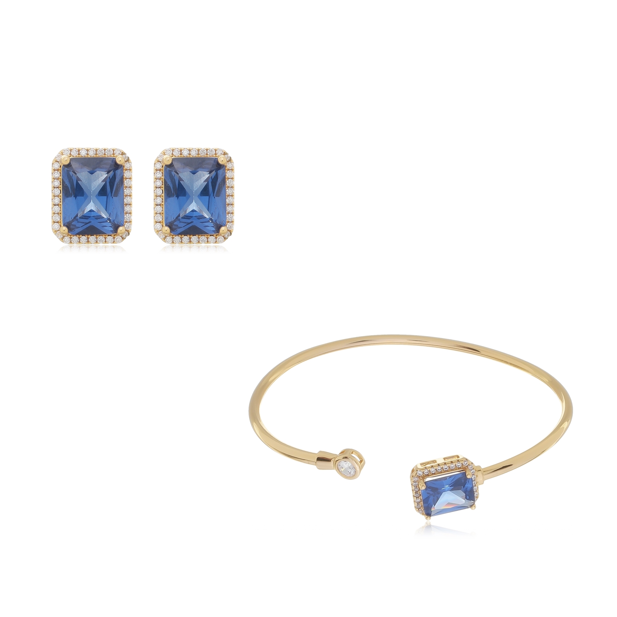 Conjunto de Brinco e Bracelete Safira com detalhe em zirconia cristal.