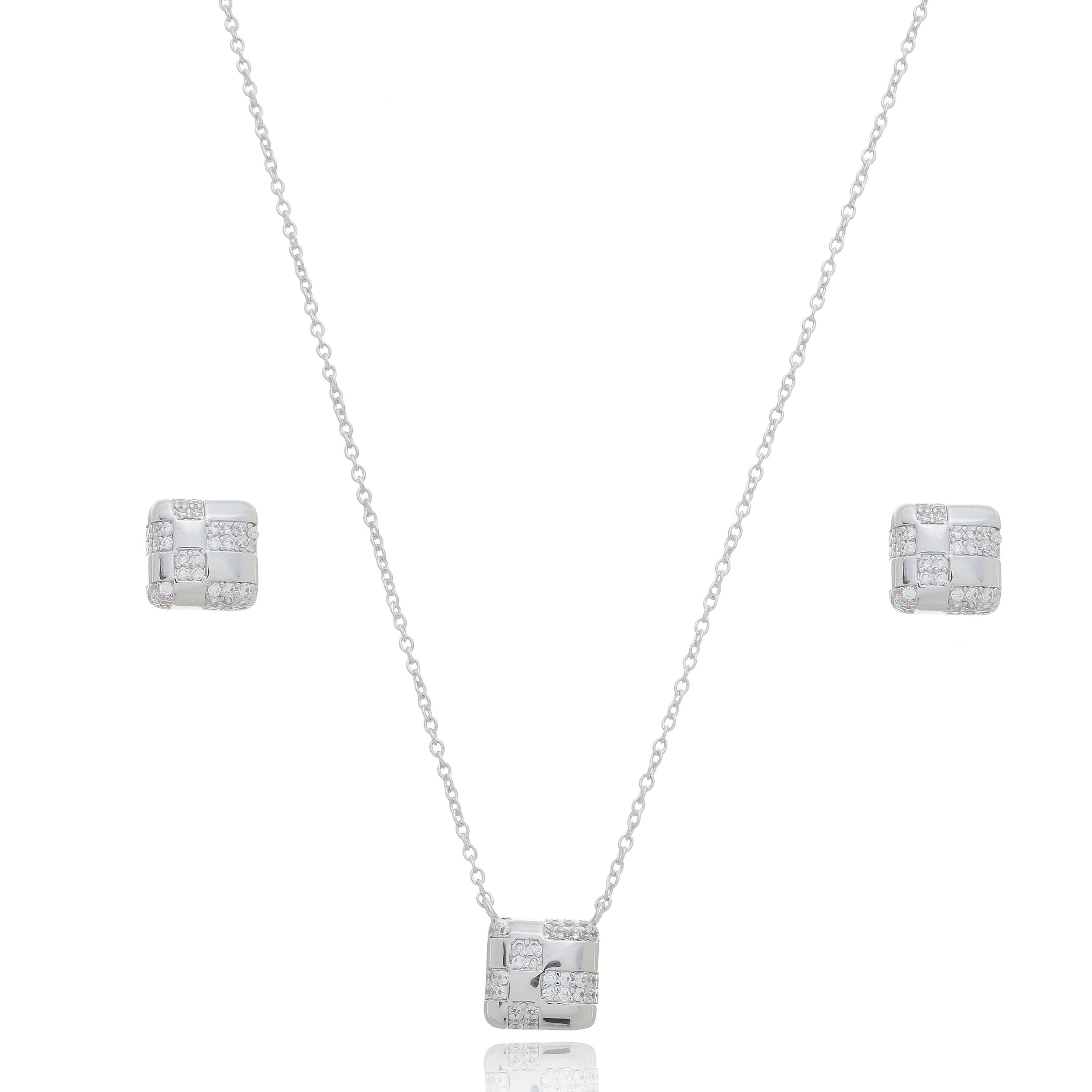 Adicione um toque de brilho e sofisticação ao seu dia com este conjunto de brinco e colar cravejado de zircônia. O brilho intenso da zircônia combina perfeitamente com o design elegante e requintado, criando um acessório de luxo único. Feito com materiais de alta qualidade, este colar é uma escolha durável e versátil. O banho em Ródio branco oferece um brilho intenso e uma aparência sofisticada, combinando perfeitamente com qualquer look.