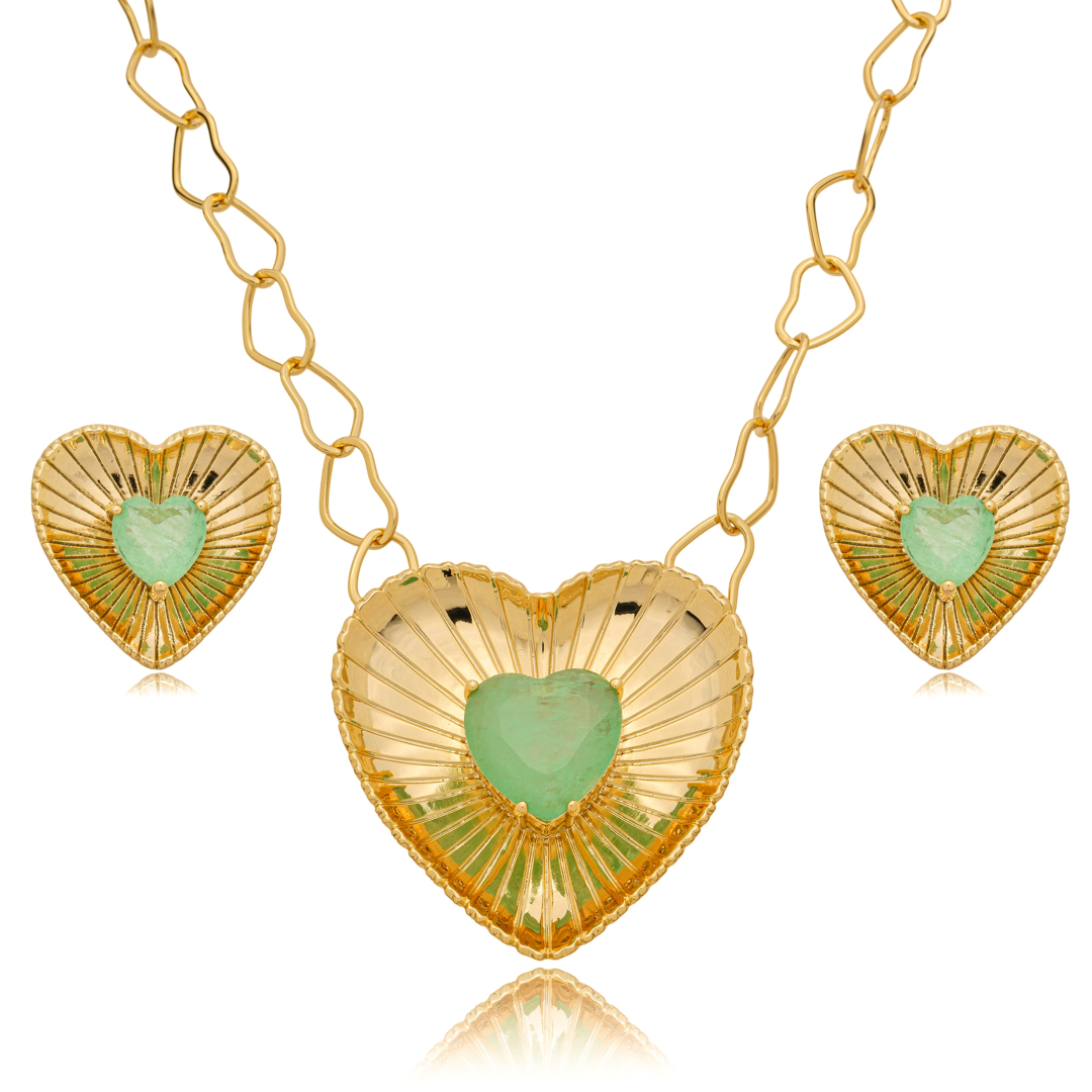 Conjunto de brinco e colar cravejado de pedra fusion turmalina