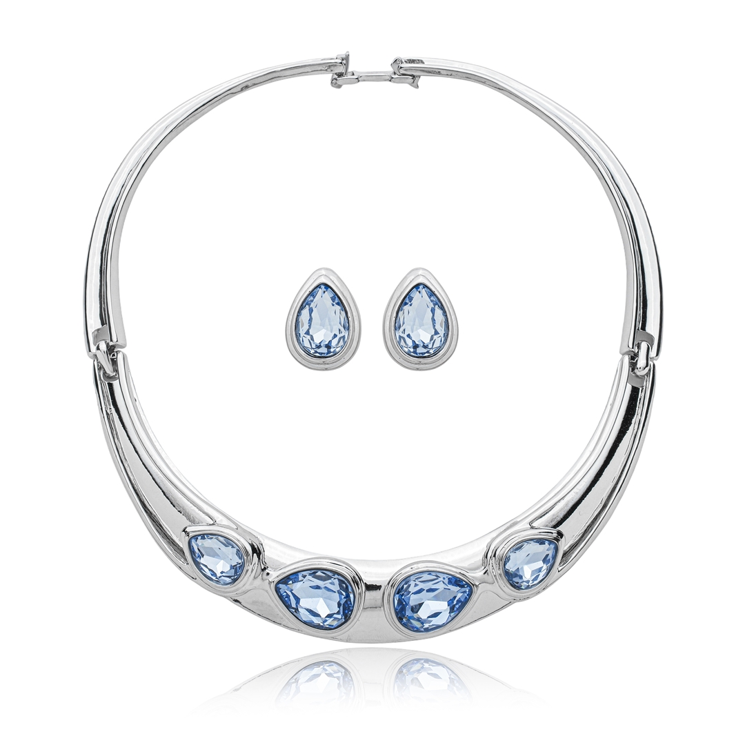 Conjunto de brinco e colar cravejado de zircônia topázio