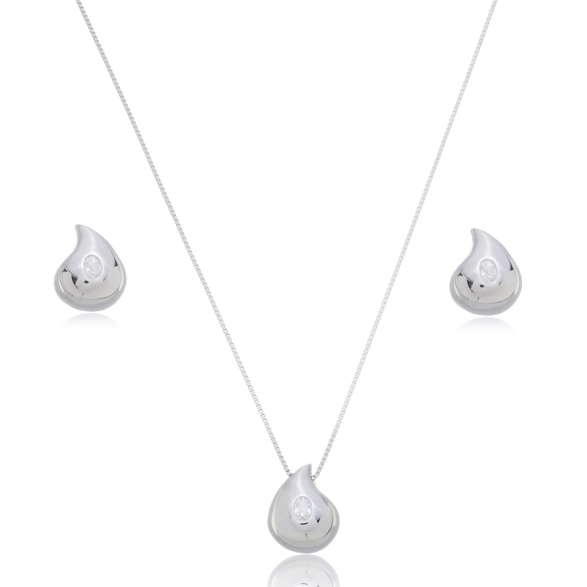 Conjunto de brinco e colar com detalhe em zirconia cristal