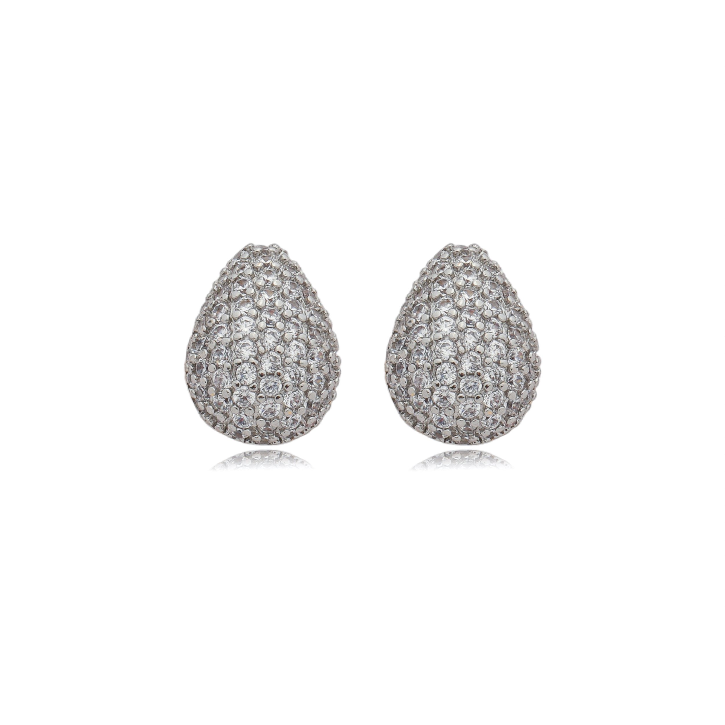 Brinco cravejado de zircônia cristal com detalhes em caneta de ródio branco