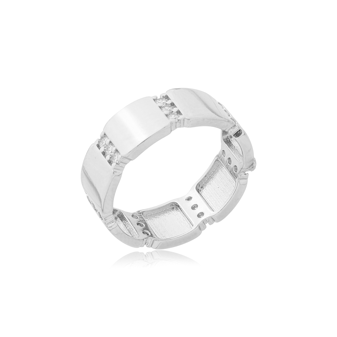 Anel cravejado de zirconia cristal banho em rodio branco
