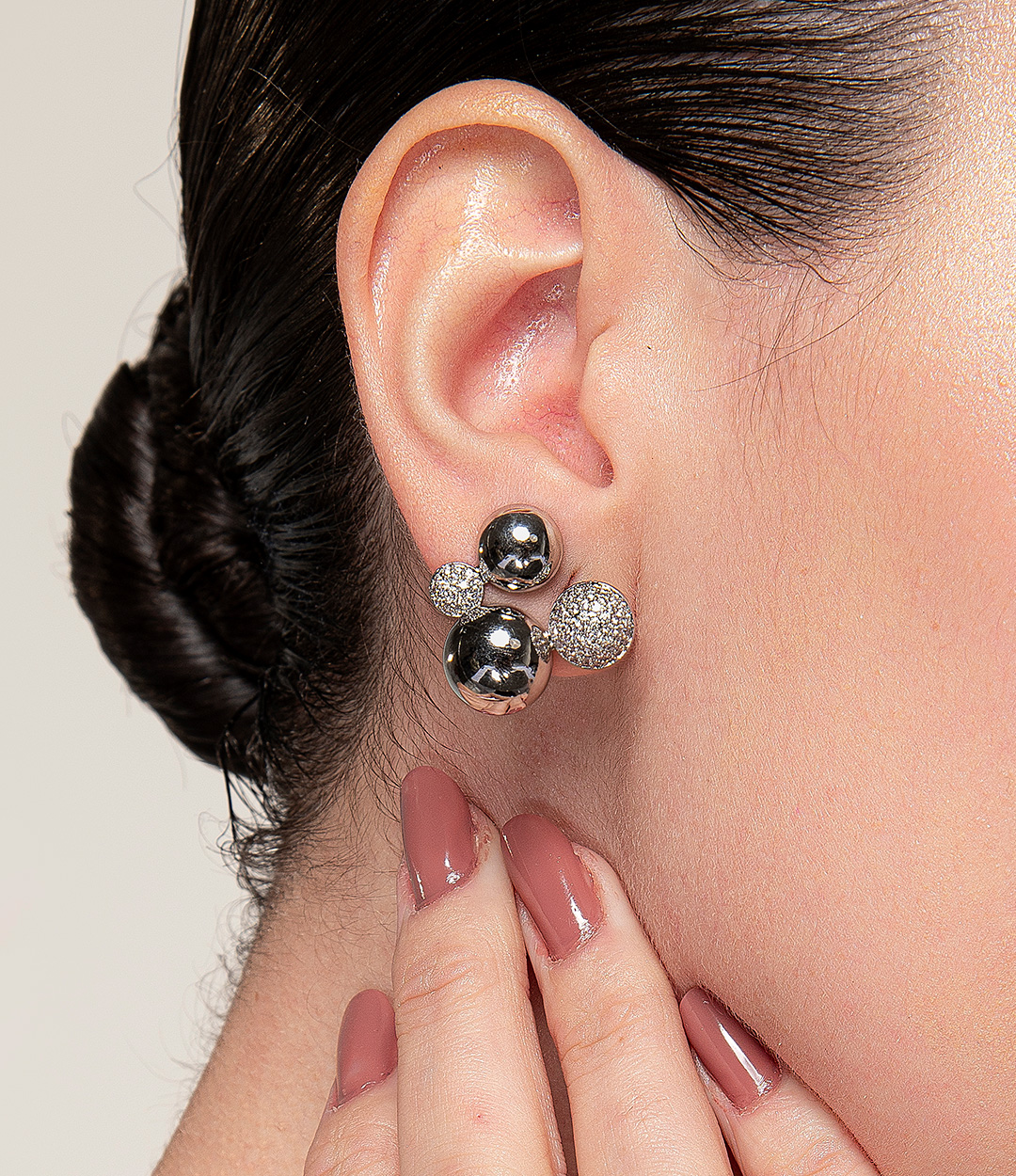 Brinco cravejado de zirconia cristal banho em rodio branco
