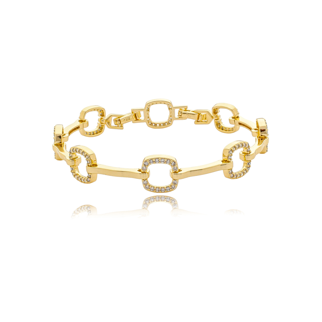 Pulseira cravejada de zircônia cristal banho em ouro 18k