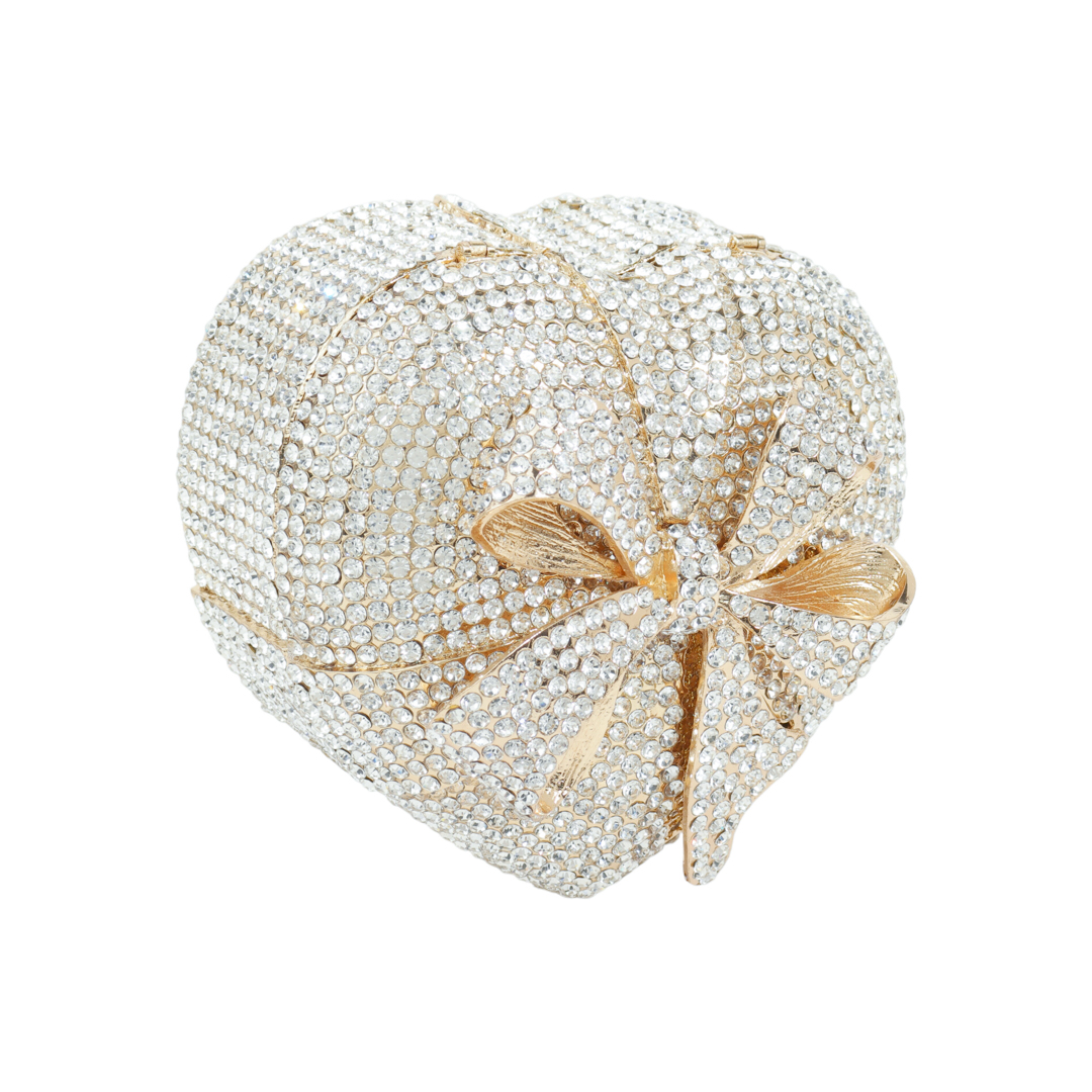 Bolsa de cluth de coração em metal cravejada de cristais com alça removível