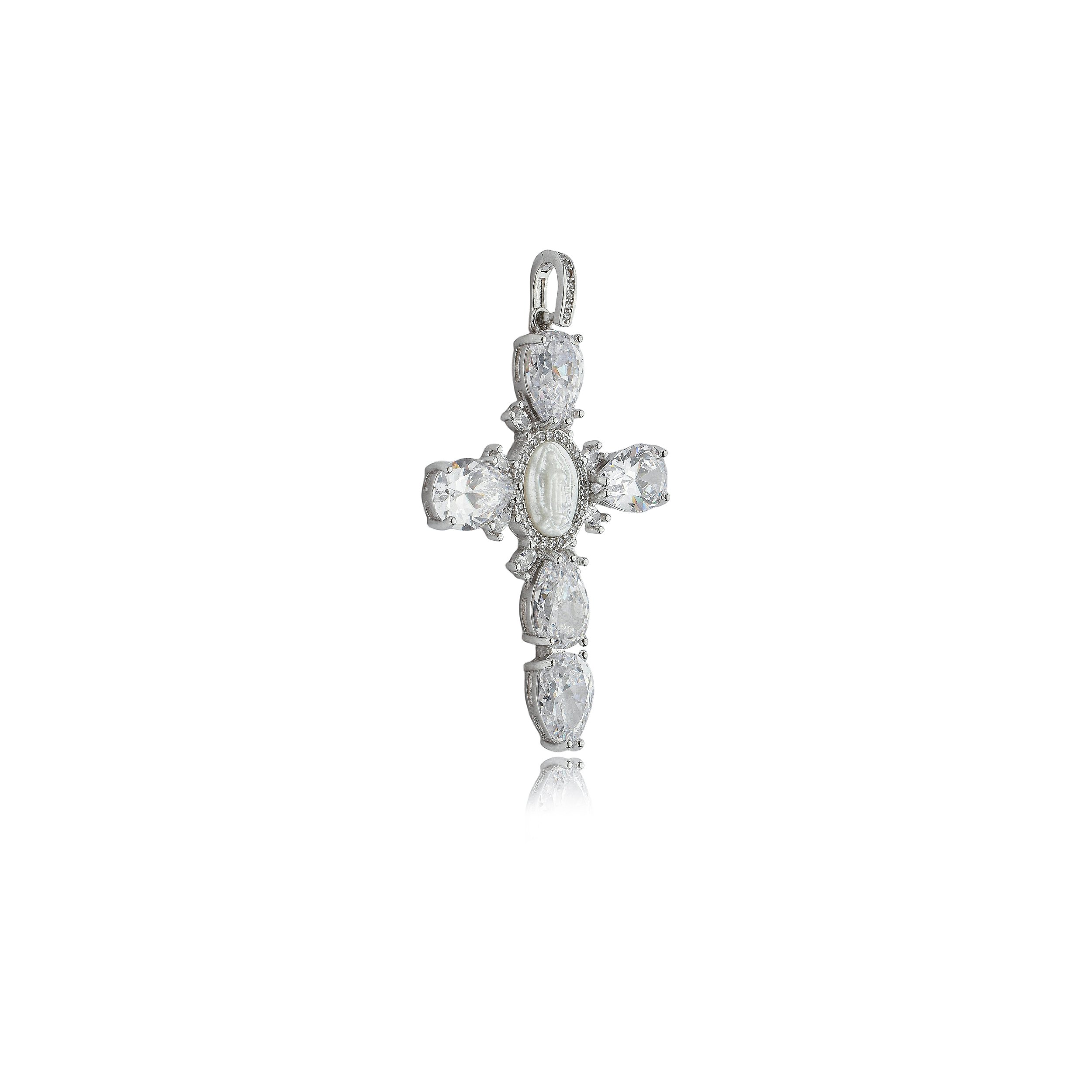 Pingente cravejado de zirconia cristal e madre perola banho em rodio branco