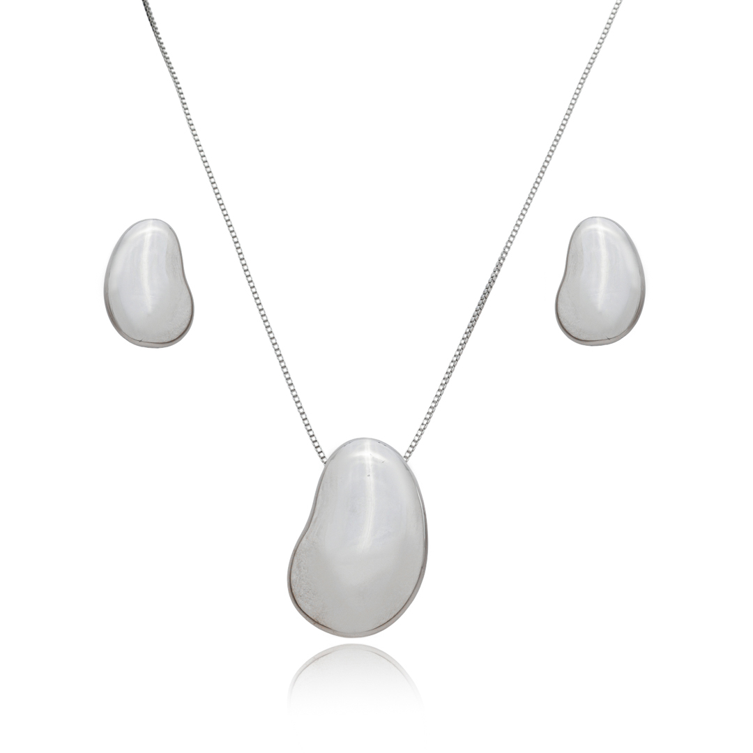 Conjunto de brinco e colar liso