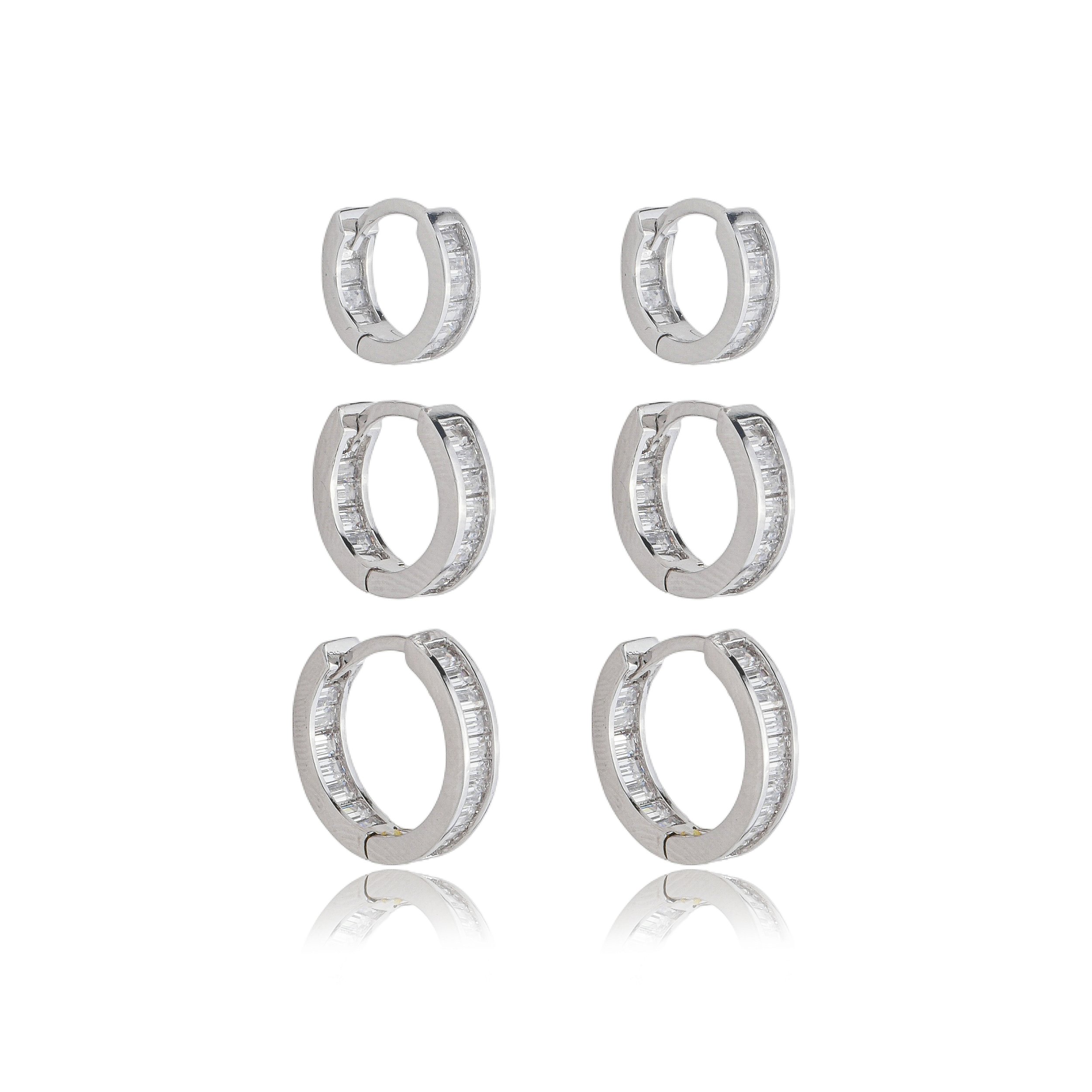 Brinco de trio de argola cravejado de zircônia cristal
